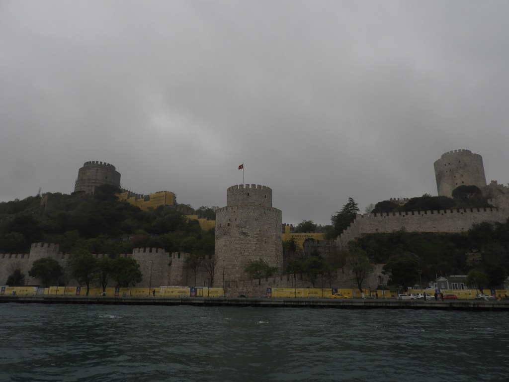 At times it looked like there were races between the ships, they were traveling at such a high speed. Sadly our sunset cruise saw no sun, just grey clouds. We did however get to hear about a range of the buildings / palaces and mosques along the river. Given its critical position, it is no surprise that it includes sites such as the Rumeli Fortress from the Ottoman period. It was built in 1451 as ordered by the Sultan Mehmed II with an aim to cut off any military support for the Byzantine city of Constantinople, enabling the Ottomans to take over as their new capital city.
